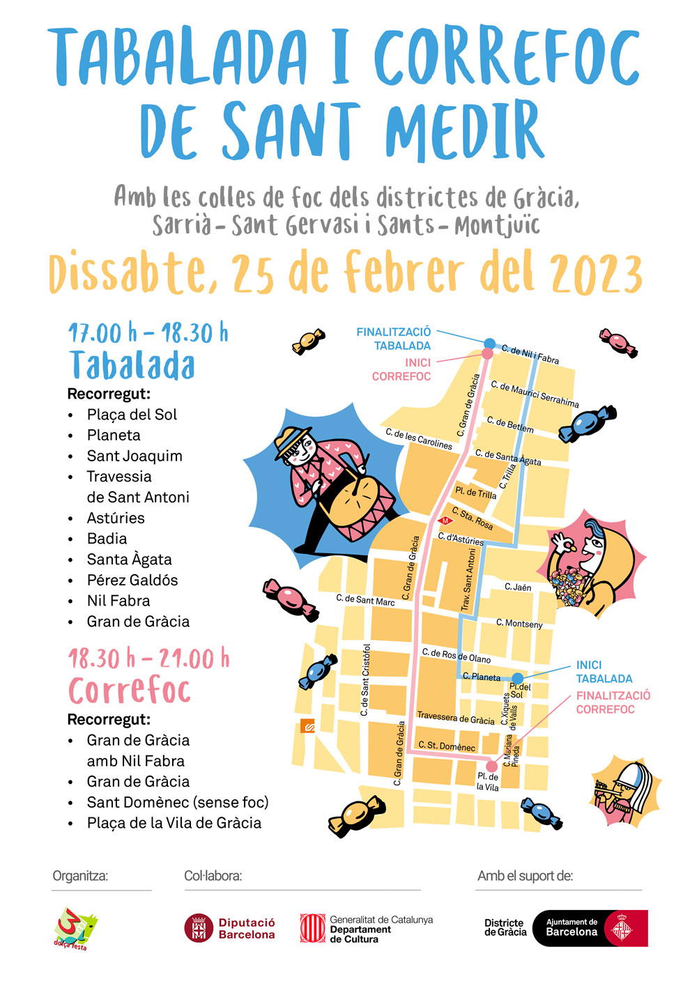 A les 20.30 h gaudirem d’una encesa conjunta Gràcia-Sant Medir. Estrena d’un final d’acte que ens mostrarà els colors de la Dolça Festa a través de la pirotècnia, que s’iniciarà amb els colors de la Vila i ens portarà a un final de llum i colors en el que hi participaran totes les Colles de Foc. No us ho podeu perdre, serà espectacular!