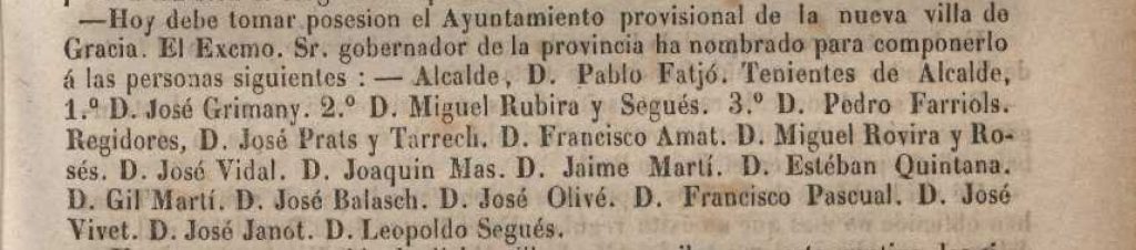 De fet, entre 1835 i 1837, en algun moment indeterminat d’aquells anys, Vidal Granés marxa de Sant Cugat i s’instal·la a Gràcia. Potser la pèrdua de l’empara familiar del monestir i la persecució insistent que pateix a Sant Cugat en siguin els motius. Per què Gràcia, per això? Hem de pensar que ja coneixia prèviament l’aleshores barri d’extramurs de Barcelona perquè un dels testimonis del seu casament n’era veí. I també hi ha un altre element de què hem de ser conscients: en aquell temps Gràcia era una terra d’oportunitats, el segon eixample històric barceloní després de la Barceloneta, on acudia gent de la ciutat i d’arreu de les comarques veïnes per viure-hi i treballar a les fàbriques i vapors que s’hi anaven implantant o per donar serveis bàsics a aquests obrers. Així, esdevingué una espècie de terra promesa on es podia deixar enrere el passat i començar de zero i on ningú coneixia ningú perquè tothom era nouvingut. Per això en aquella època Gràcia creix tan ràpidament: el 1821 té 2.608 habitants i el 1848 ja en té uns 12.000.