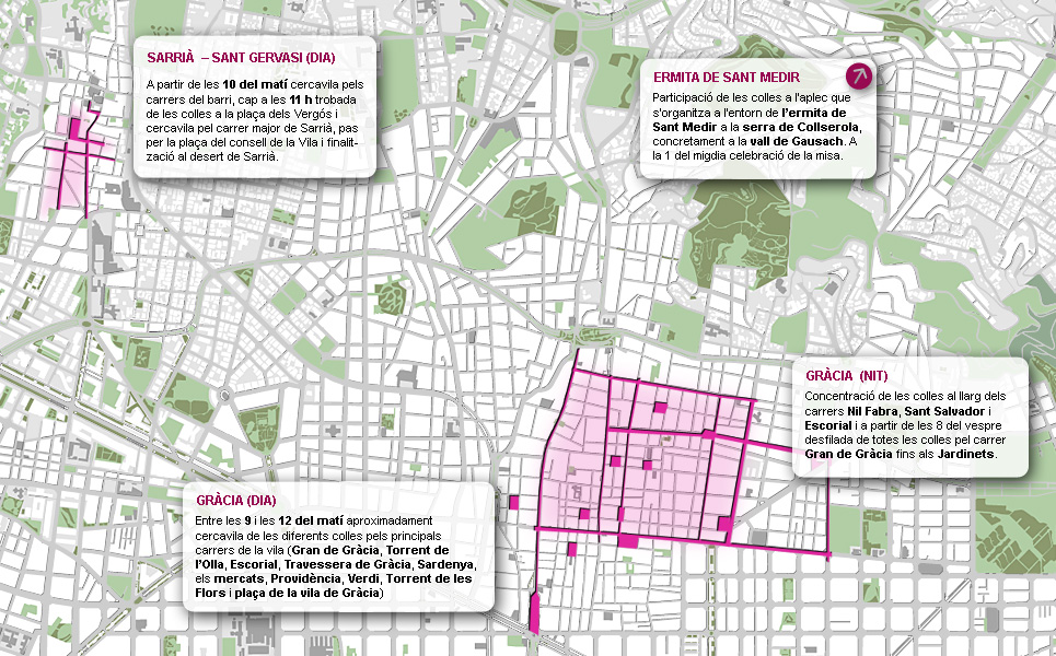 En el següent enllaç trobareu tots els recorreguts del matí de les diferents Colles: cliqueu aquí.